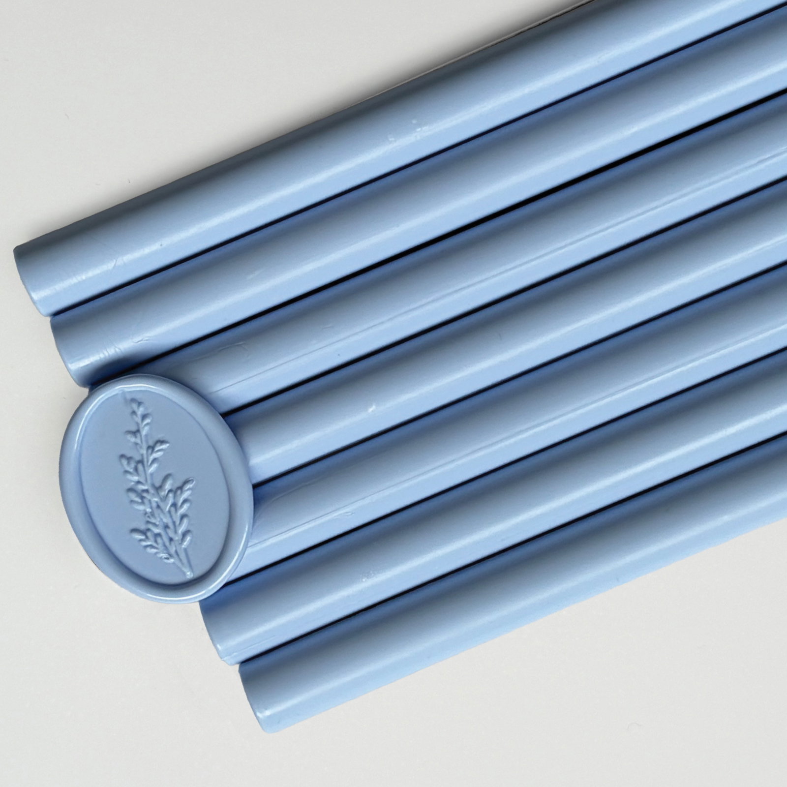 Cu batonul nostru de ceară albastru deschis, veți putea adăuga un element deosebit de sofisticare și autenticitate fiecărui sigiliu creat, asigurându-vă că fiecare invitație sau felicitare este unică și memorabilă.